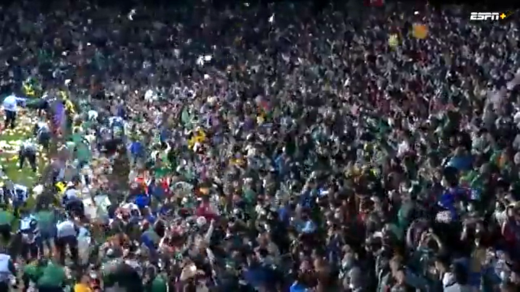 «Белые пятна» на первых двух скринах — это летящие с трибун на поле мягкие игрушки