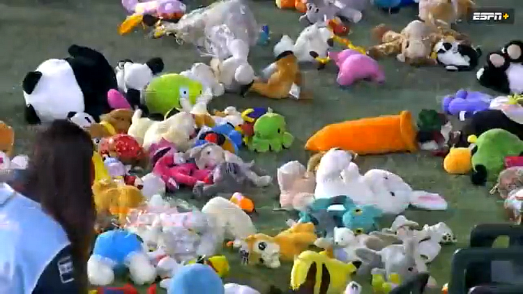 Во время перерыва на футбольном матче болельщики ФК «Реал Бетис» стали бросать на поле тысячи мягких игрушек