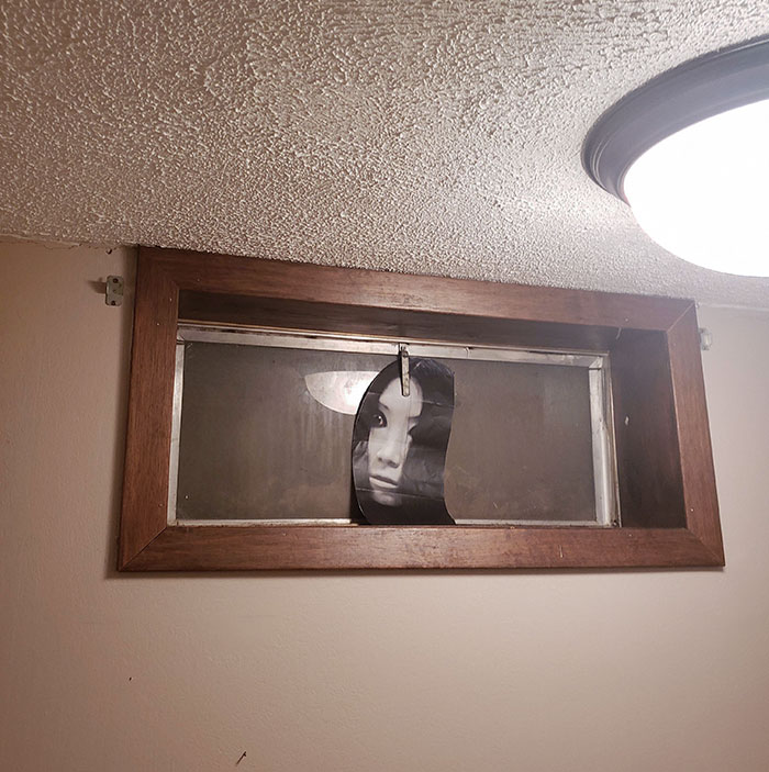 «Мы с друзьями переехали в новый дом и я нашёл шкаф, полный вырезок с изображениями кукол. Думал, что это было достаточно жутко само по себе, но потом я внимательно присмотрелся…»