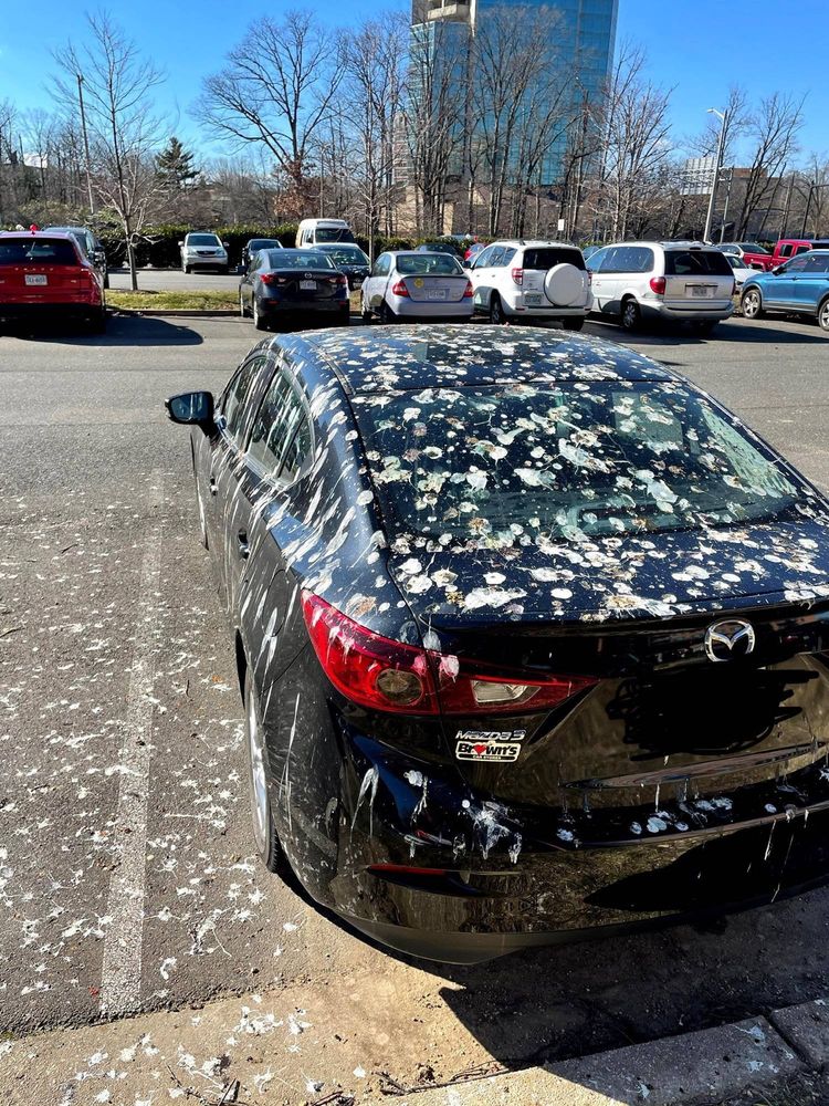 Пользователи посоветовали автору фото поскорее смыть это, так как состав птичьего помета преимущественно кислотный, в частности, там есть большое количество мочевой кислоты, способной повредить краску автомобиля