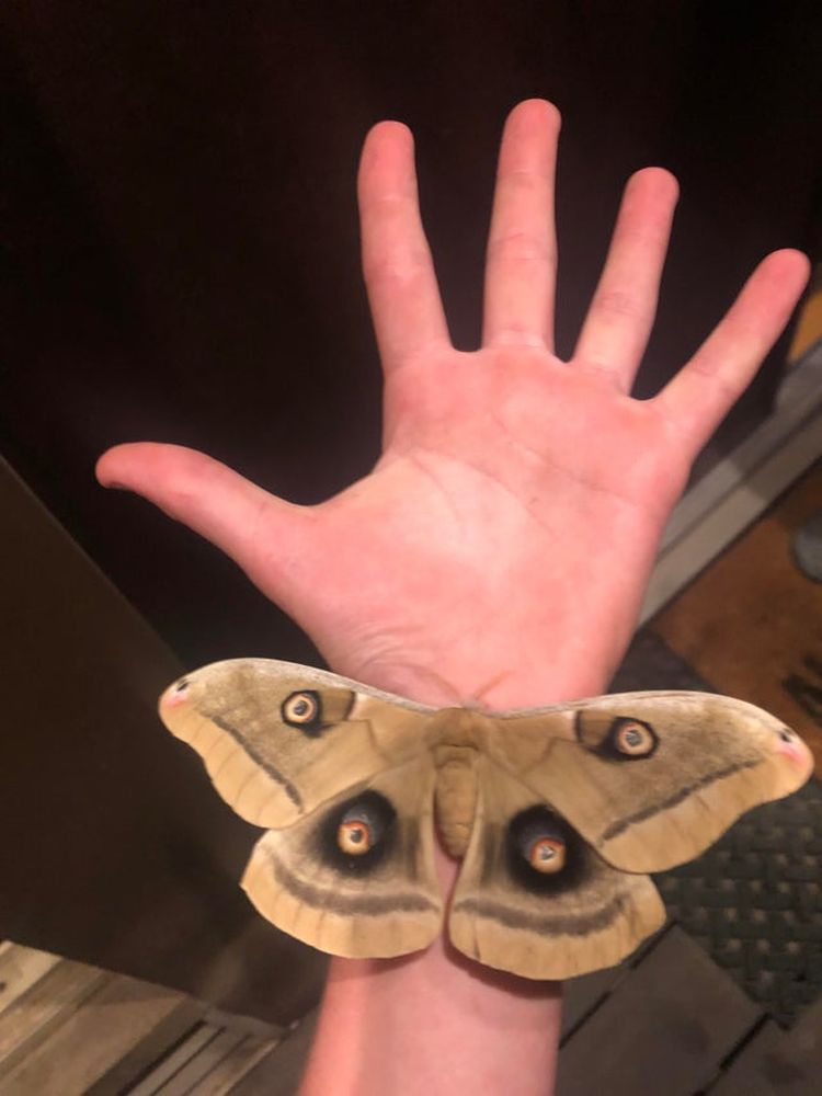 Предположительно, это бабочка сатурния полифем, член семейства гигантских шелкопрядов. Вы только взгляните в эти глаза!