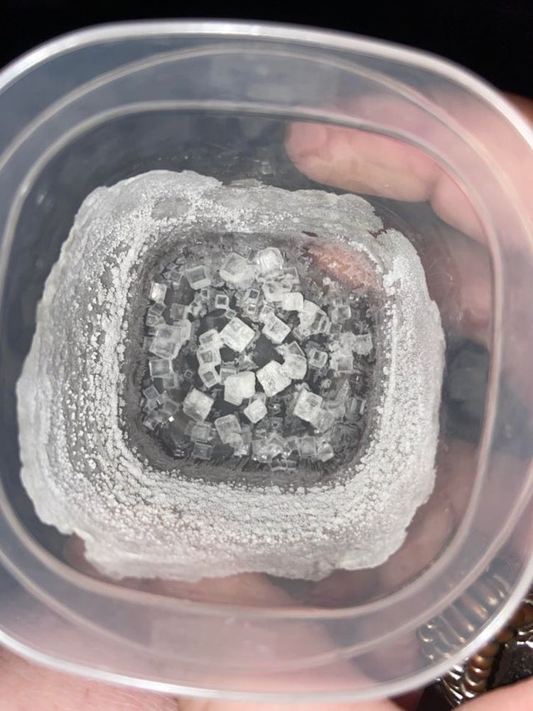 Автор фото случайно получил идеальные кристаллы соли. Чистый хлорид натрия!