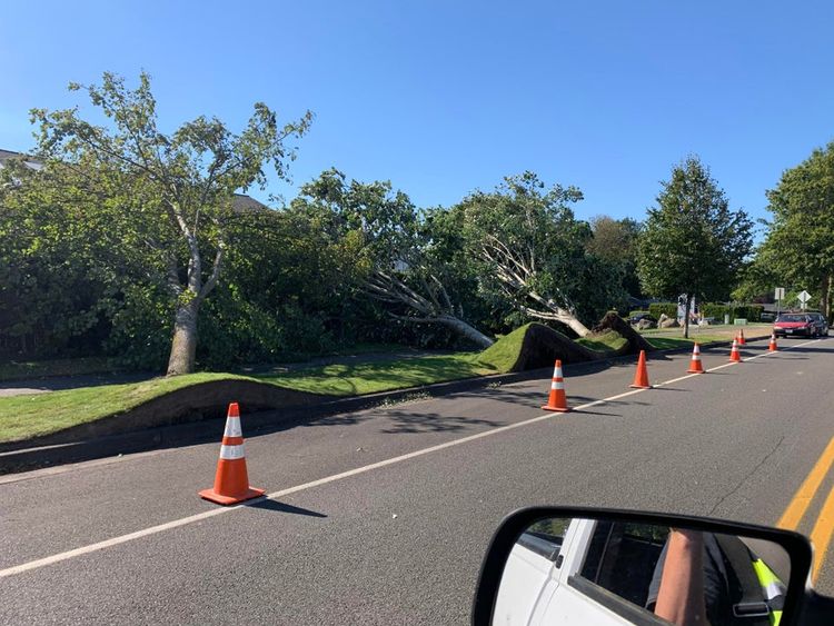 Автор фото написал, что это произошло из-за сильного штормового ветра, а эти деревья были выращены в питомнике и их только недавно пересадили.