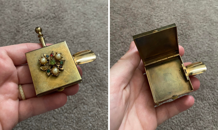 Вопрос: «Небольшой металлический контейнер, найденный в вещах моей бабушки. Лежал среди швейных изделий и всякой всячины. Пустой внутри»