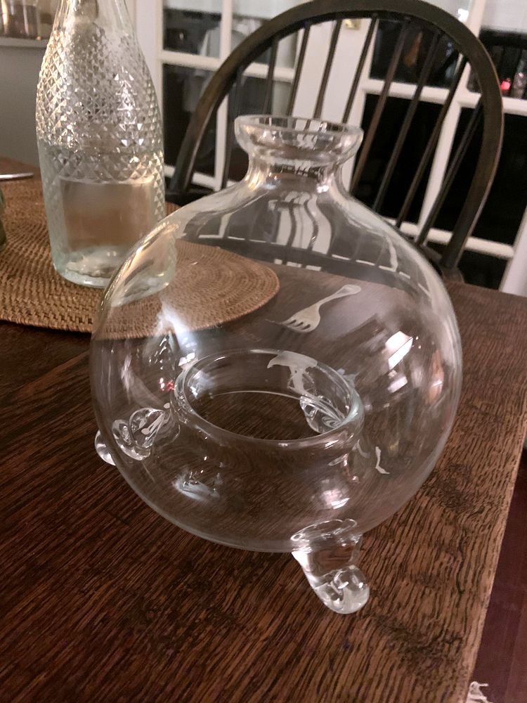 Вопрос: «Найдено при очистке дома покойного. На первый взгляд кажется, что это для хранения жидкости, но на дне есть большое отверстие. Что это за штука?»