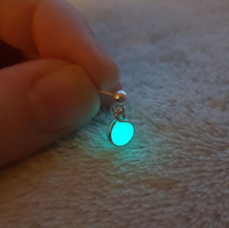 «Одна из сережек, которые я сделала из драгоценных металлов, смолы и светящегося пигмента»