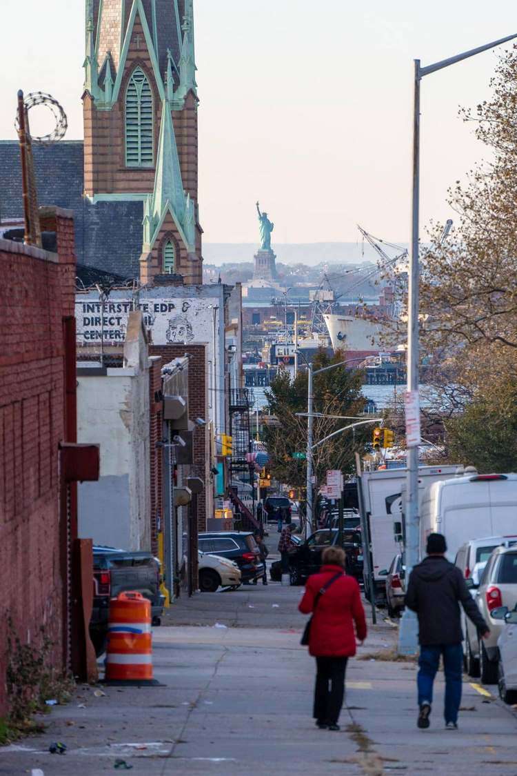 Статуя Свободы, Нью-Йорк, вид из Сансет парка в Бруклине