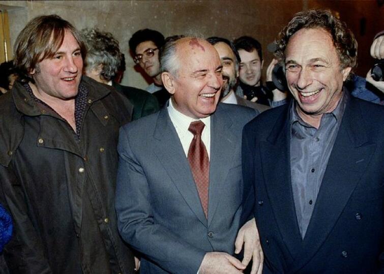 Жерар Депардье, Михаил Горбачёв и Пьер Ришар на Московском кинофестивале, 1993 год