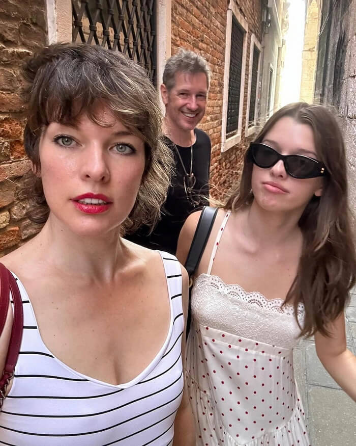 Милла Йовович с мужем Полом Андерсоном и старшей дочкой Эвер