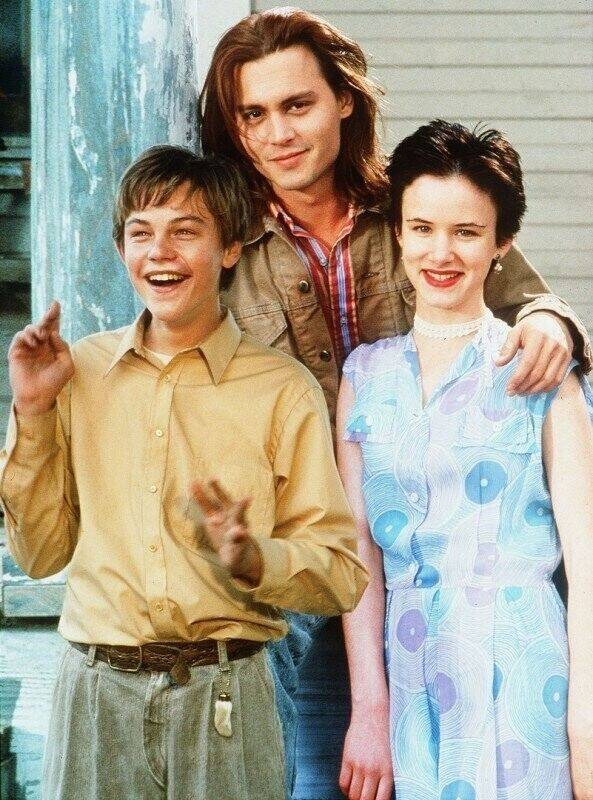 Леонардо Ди Каприо, Джонни Депп и Джульетт Льюис на съемках фильма “Что гложет Гилберта Грэйпа”, 1993