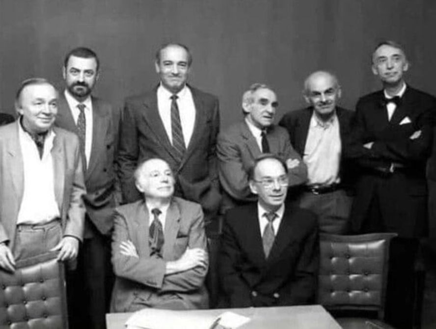На одном кадре — целая плеяда мастеров слова и сцены: поэты и актёры Андрей Вознесенский, Григорий Горин, Валентин Гафт, Зиновий Гердт, Булат Окуджава, Александр Иванов, Иннокентий Смоктуновский и Алексей Баталов — редкое собрание талантов в одном пространстве.