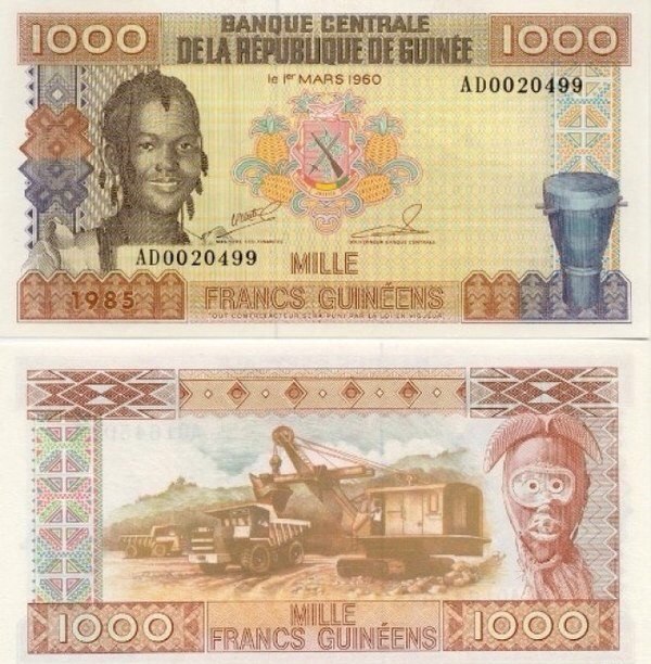 На купюре в 1000 гвинейских франков изображен самосвал БелАЗ