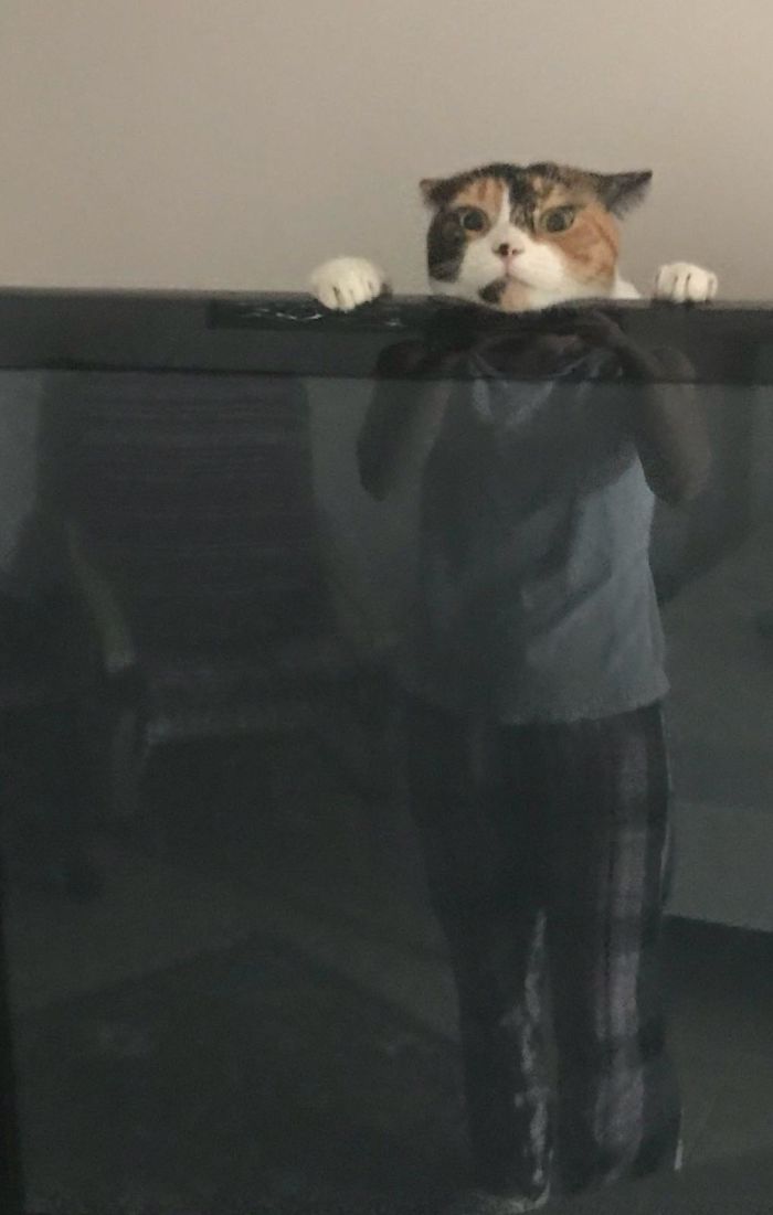 “Моя жена только что прислала мне это фото нашей кошки, играющей за телевизором”