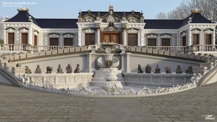 Перед двухэтажным дворцом в западном стиле располагался фонтан, который был окружен 12 животными китайского гороскопа.