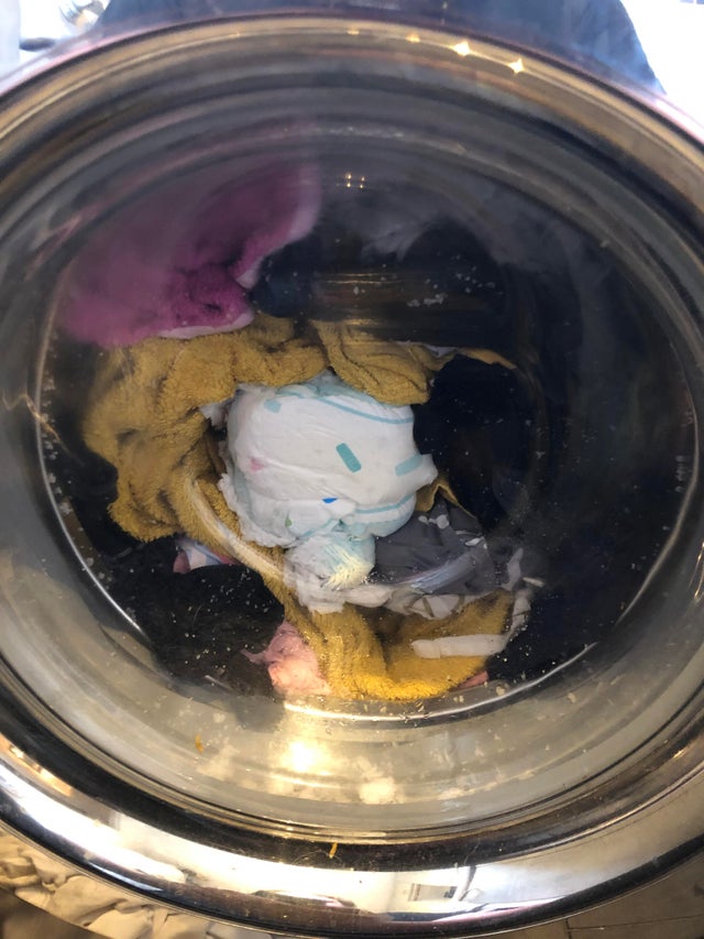 “Сегодня утром я случайно бросила грязный подгузник в стиральную машину”