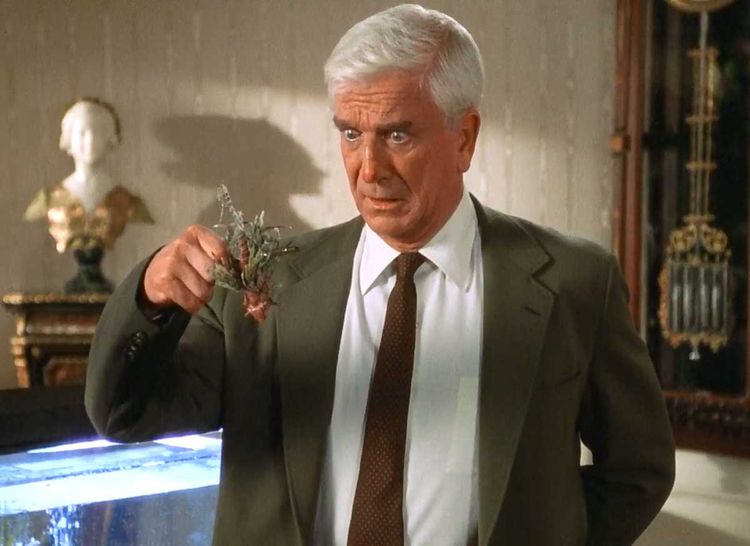Лесли Нильсен в роли лейтенанта Фрэнка Дребина, «Голый пистолет»