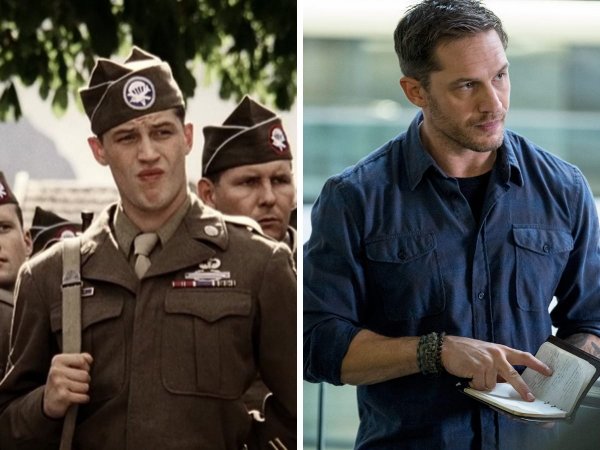 Том Харди появился в образе рядового Джона Яновеча в двух эпизодах сериала «Братья по оружию».