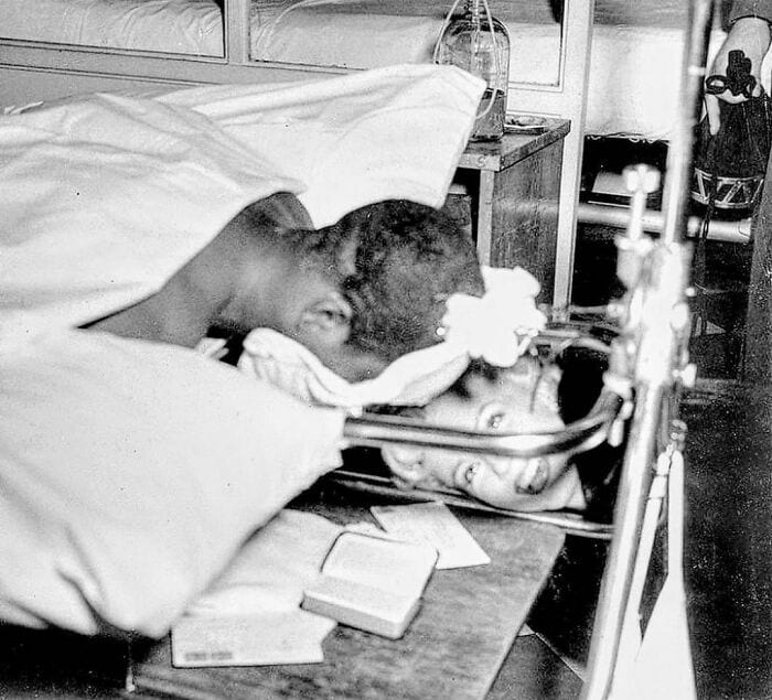 Мэрилин Монро навещает раненых солдат в Японии, 1954 год.