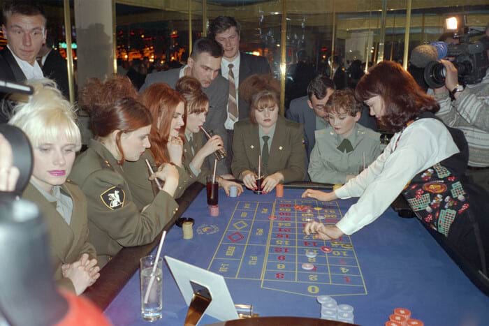 Финалистки конкурса «Мисс «Красная звезда» за игорным столом, 1997 год.