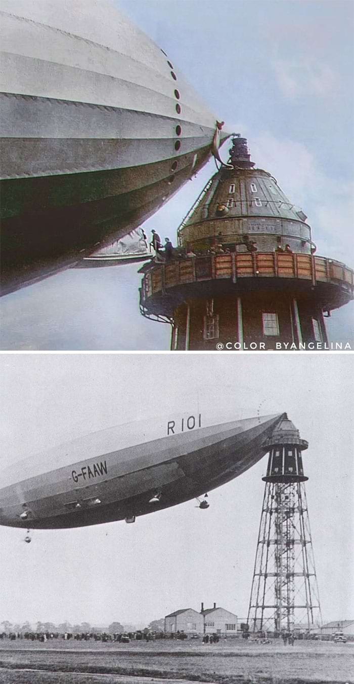 Посадка пассажиров на дирижабль: британский R101, 1930 год.