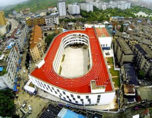 Школа в Китае совсем небольшая, но это не повод отказываться от спортивной площадки. Здесь все необходимое для физкультуры есть на крыше.