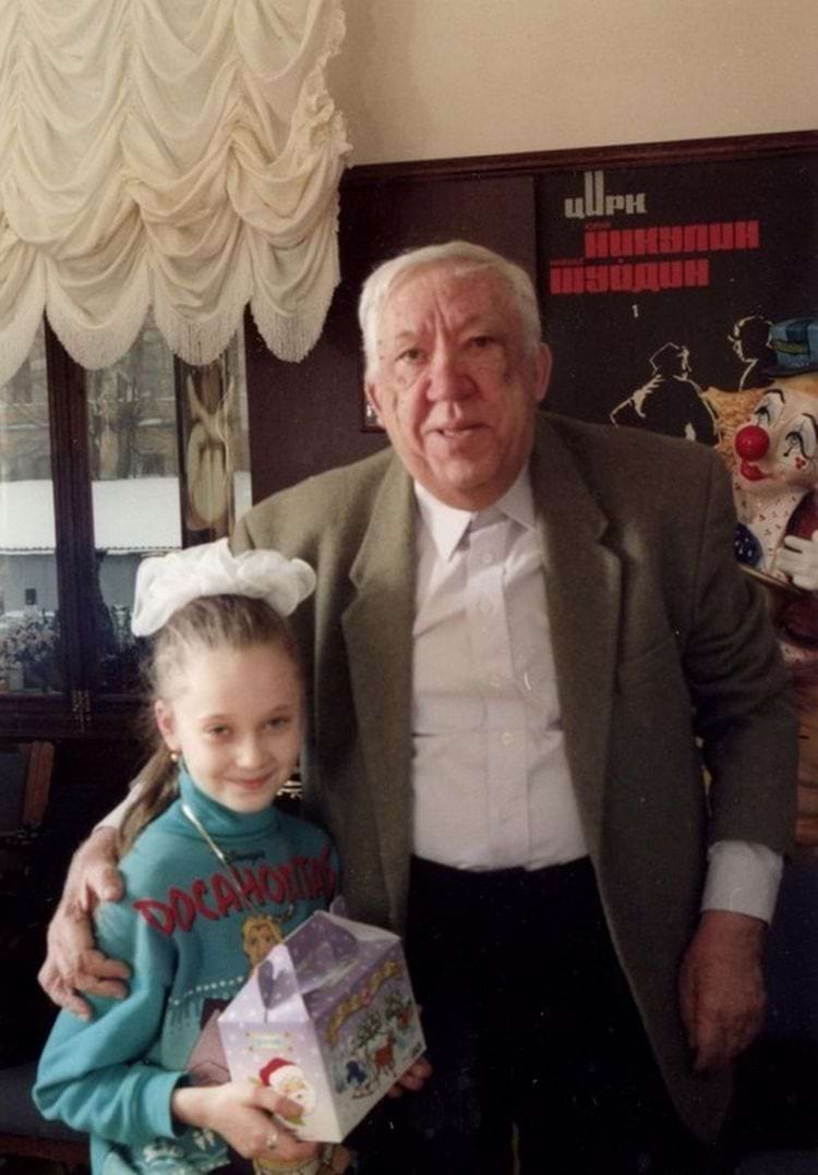 Юрий Никулин с маленькой поклонницей в цирке, 1990-е годы