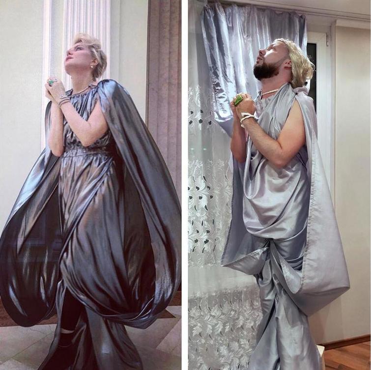 В Инстаграме есть такой увлекательный персонаж как Юрий Истерика, который пародирует звёзд используя всё, что попадётся под руку.