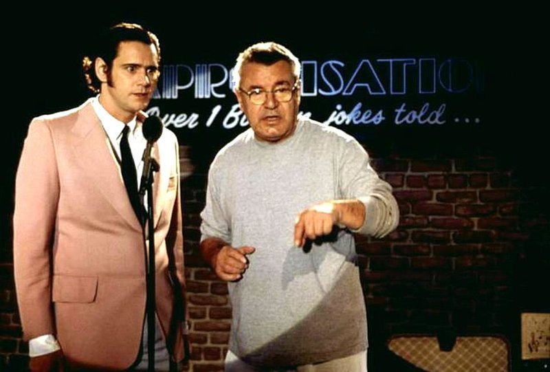 Джим Керри вместе с режиссером Милошем Форманом на съемочной площадке фильма «Человек на Луне» (Man on the Moon), 1999 год.