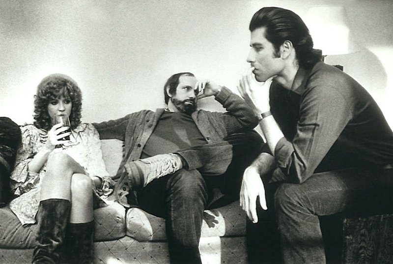 Нэнси Аллен, Брайан Де Пальма и Джон Траволта на съемочной площадке фильма «Прокол» (Blow Out), 1981 год.