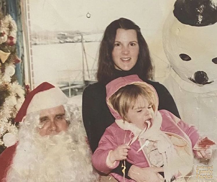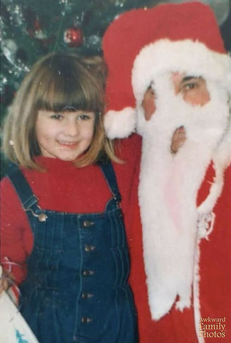 «Я на рождественской вечеринке, когда мама уговаривала меня сфотографироваться с бродягой-Сантой и ужасно пугающим снеговиком»