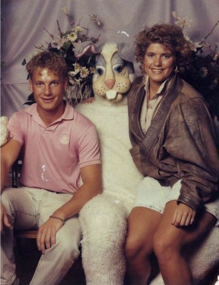 «Пасха в Грейт-Фолс, штат Монтана в 1989 году, с моей сестрой и пасхальным кроликом, который до сих пор не дает мне покоя»