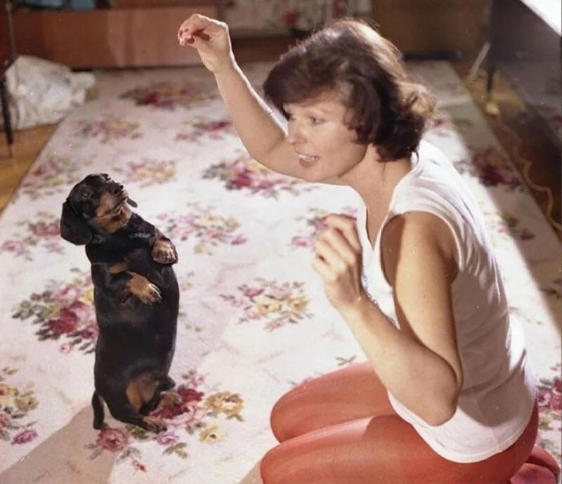 Наталья Фатеева со своей собакой дома — кадр редкой искренности, где экранная дива предстает женщиной, умеющей радоваться простым вещам.