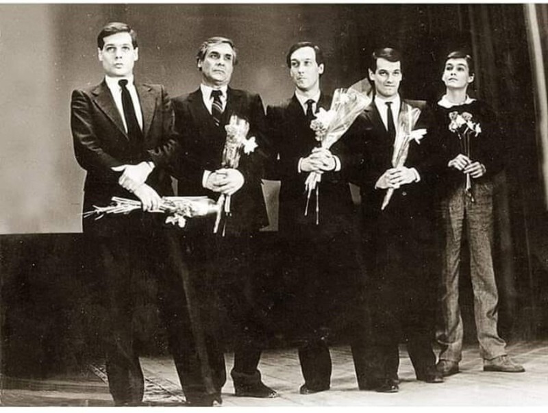 Творческий вечер семьи Янковских в Центральном Доме работников искусств (Слева направо: Игорь (племянник), Ростислав (старший брат), Олег, Владимир (племянник) и Филипп (сын) — редкое единение трёх поколений, где сцена становится домом, а дом — сценой.