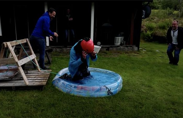 А эти ребята на мальчишнике завязали глаза будущему жениху, и заставили его думать, что он будет прыгать с банджи с моста, хотя на самом деле он был на заднем дворе своего друга
