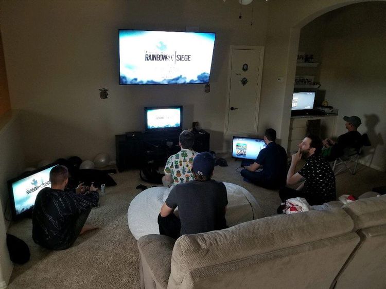Этот парень на своём мальчишнике решил поиграть по сети рядом со своими друзьями, собрав их с консолями и телевизорами у себя дома