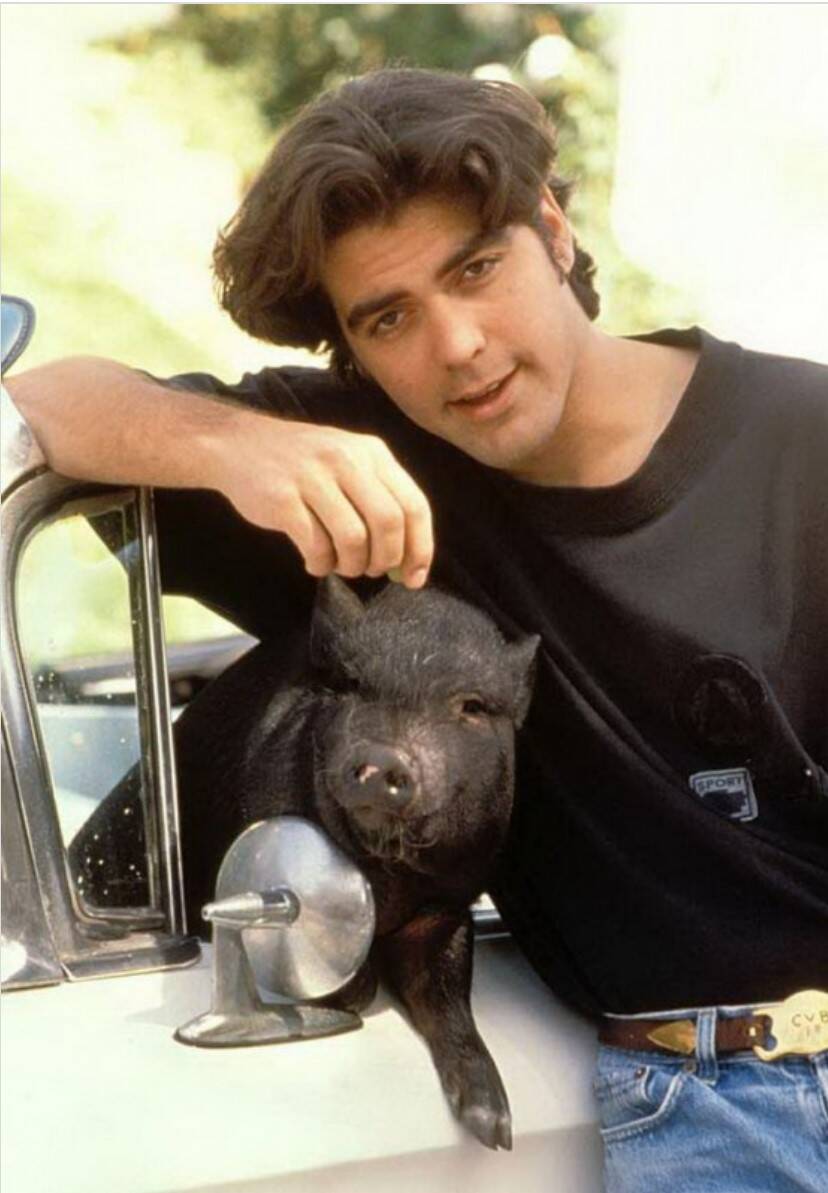 Джордж Клуни со своим домашним поросенком Максом, 1990 год