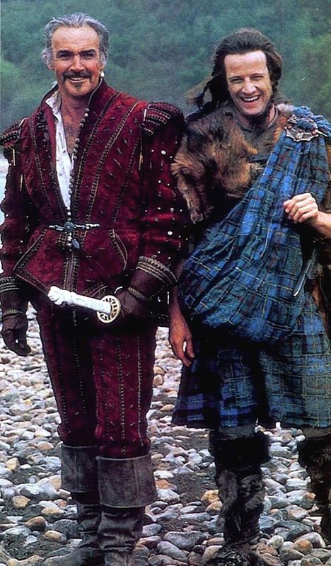 Шон Коннери и Кристофер Ламберт на съемочной площадке фильма «Горец», 1985 год.