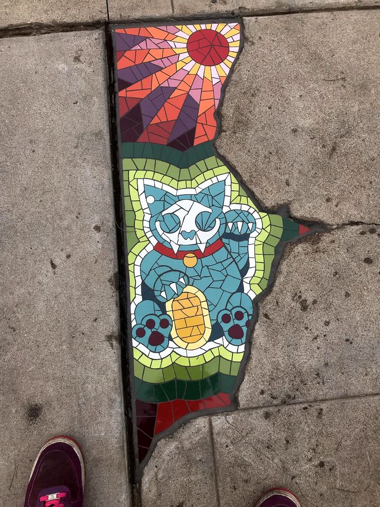 Яму на тротуаре заполнили мозаикой с изображением кошки