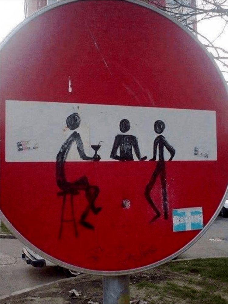 Излюбленными их «полотнами» являются дорожные знаки, но иногда под творческую раздачу также попадают плакаты, тротуары и даже машины. 12 фотографий вандализма, который мы заслужили, ждут вас далее.