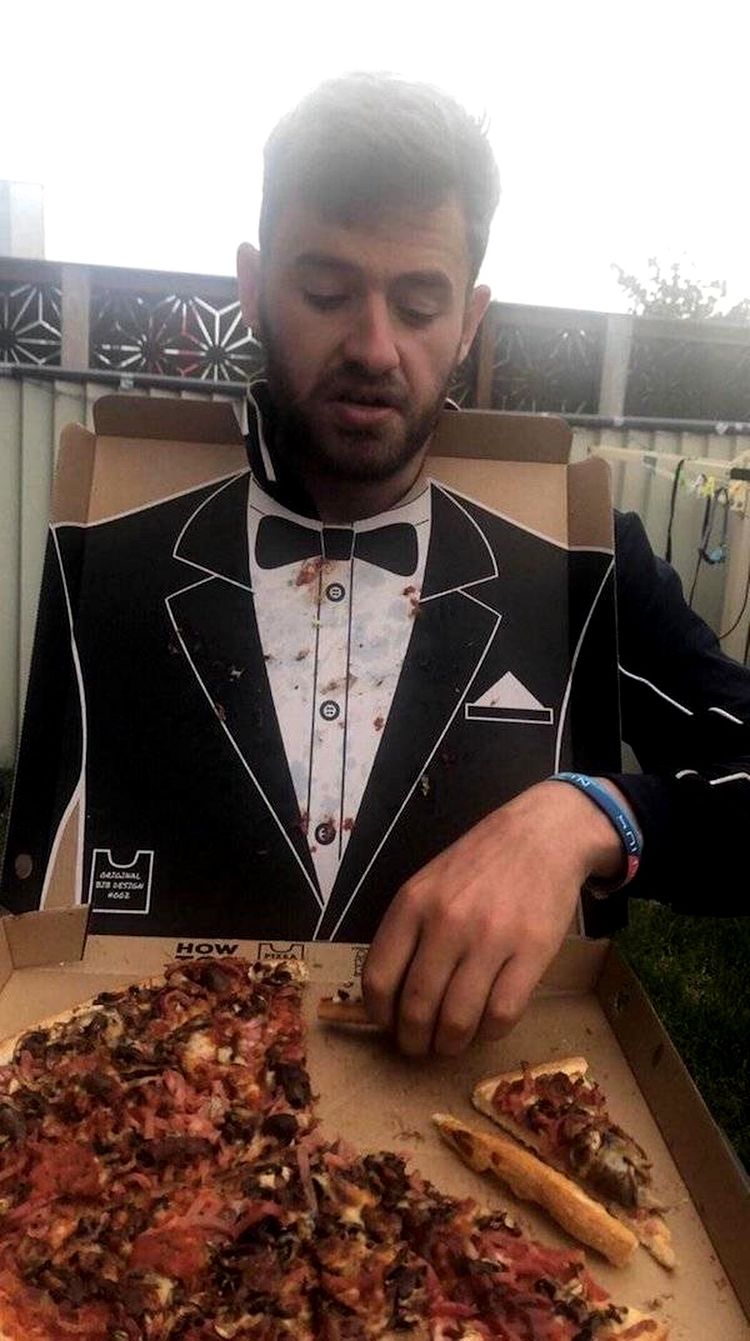 Внутри коробки для пиццы есть смокинг, который помогает не испачкаться во время еды