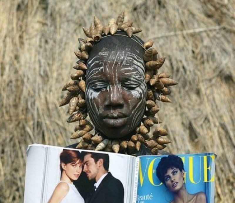 Женщина племени Мурси впервые смотрит журнал «Vogue», Эфиопия