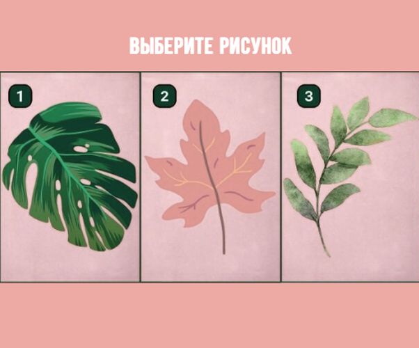 Перед вами три стилизованных листка. Сделайте паузу, зафиксируйте дыхание и отметьте, какой из них вызывает у вас наибольший отклик. Не анализируйте слишком долго; пусть решение будет спонтанным. Выбор отражает то, как именно ваш мозг распределяет внимание, когда сталкивается с неопределённостью.