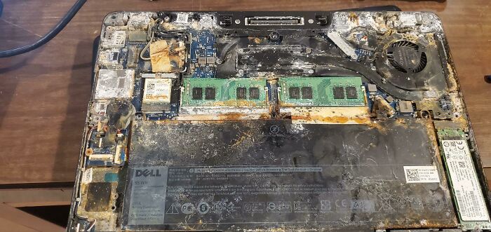 Однако ноутбук выглядит так, будто владелец нашёл его на дне озера. Стоило спросить его сколько раз он проливал «немного» воды