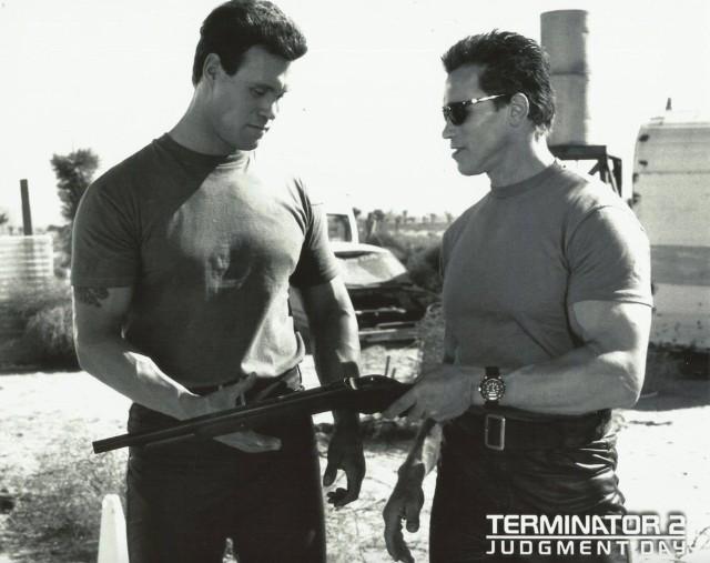 Шварценеггер и его дублер Питер Кент, 1990 год
