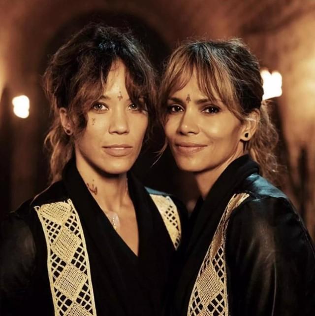 Хэлли Берри позирует с дублершей Анишей Гиббс на съемках фильма “Джон Уик 3”