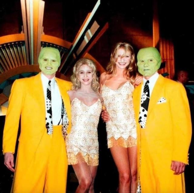 Джим Кэрри и Кэмерон Диаз с дублерами на съемках фильма “Маска”, 1994 год