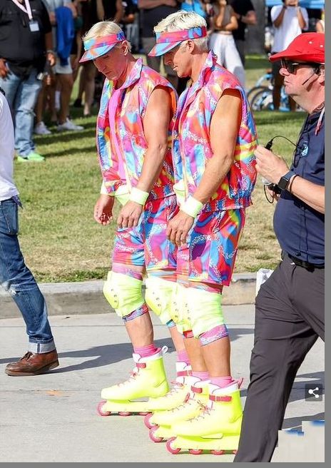 Райан Гослинг и его дублер Адам Харт на съемках фильма “Барби”