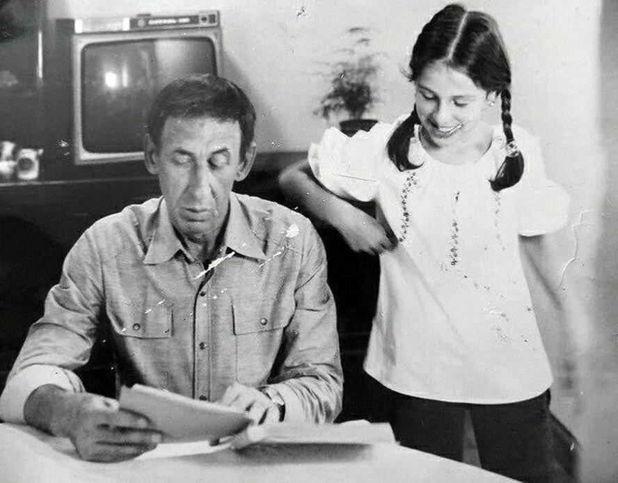 Владимир Басов с дочерью Лизой — трогательный семейный кадр, в котором строгий режиссёр раскрывается как нежный и внимательный отец.