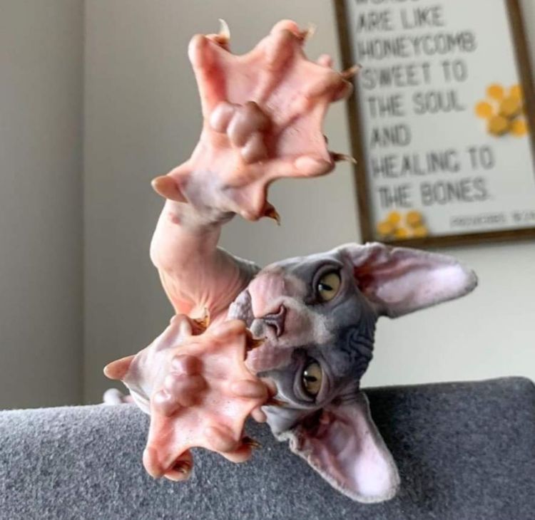 Да, уникальной особенностью сфинксов являются перепончатые лапки