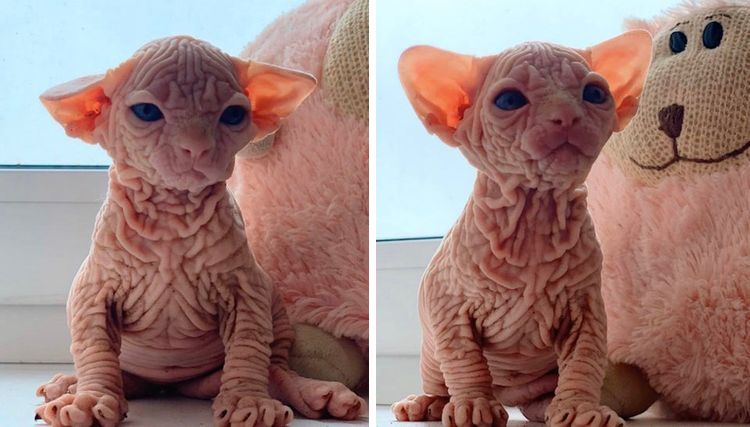 Котёнок сфинкса со всеми своими многочисленными складочками
